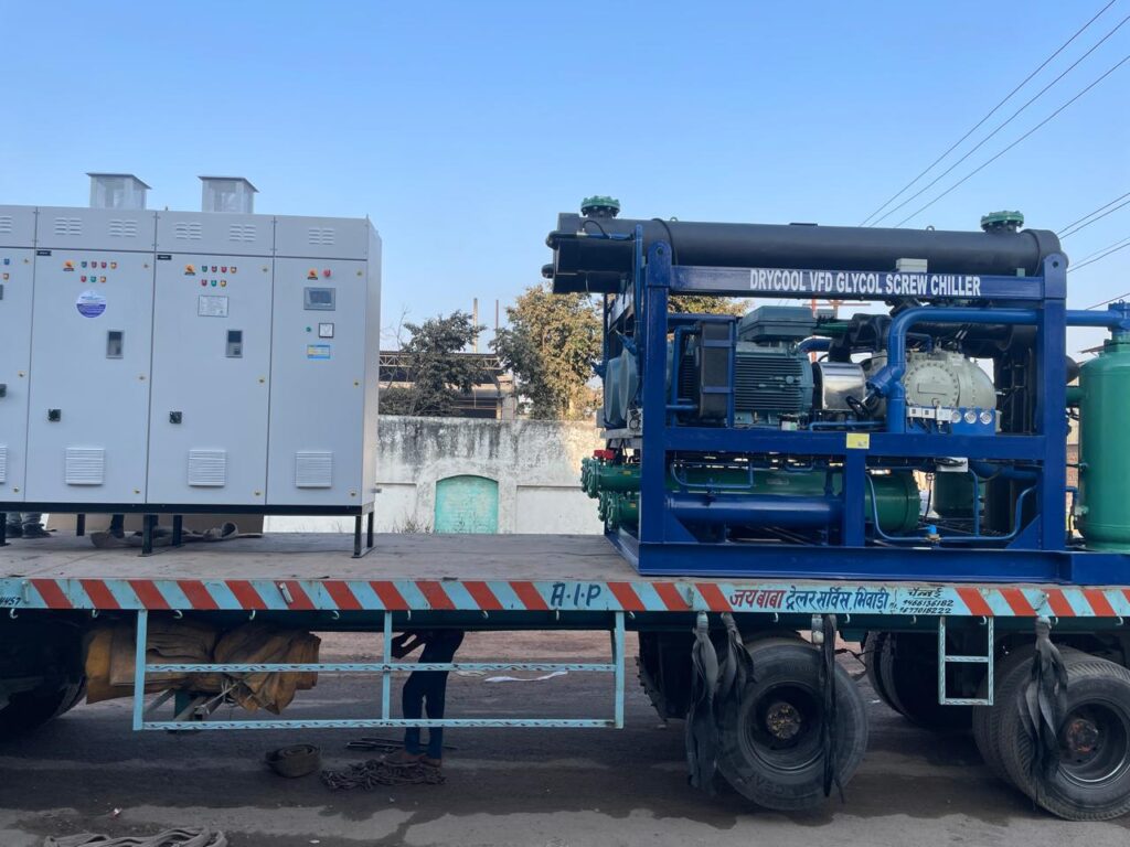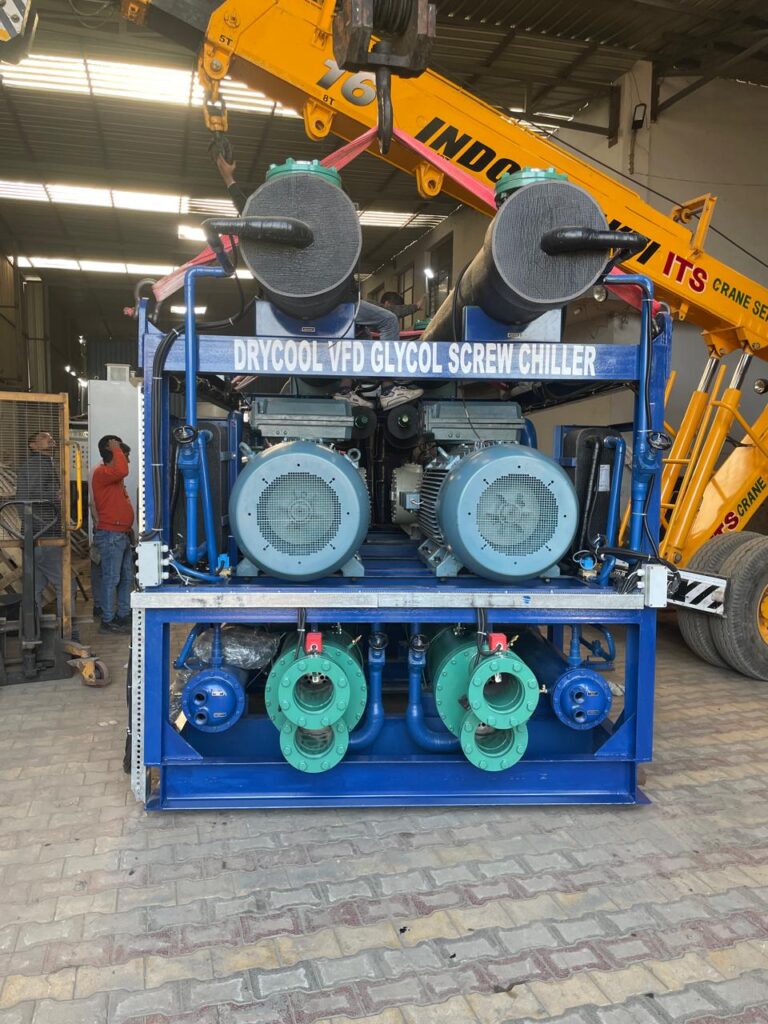 Drycool Systems is one of the leading suppliers of brine chillers, chemical chillers, methanol chillers for applications in which Pharmaceuticals, Agrochemicals, Polymers, Additives, Surfactants, Pigments, Dyes, etc are being manufactured. Drycool’s export design and manufacturing team ensures that the medicinal or the petrochemical product receives complete coverage of a high volume of brine, which provides total temperature uniformity within the batch. This lowers operating costs per kg of product, reduces floor space required and improves shelf-life. The speed and uniformity in reaching the desired chill temperature will allow immediate packaging, which further saves inventory costs.